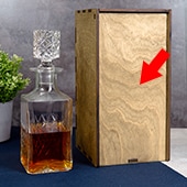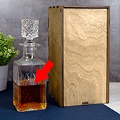 Штоф упакован в стильный деревянный футляр, на крышку которого наносится гравировка по Вашему заказу.