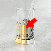 Корпус подстаканника изготовлен из латуни Л-68 по ГОСТ 24320-80. Подстаканник покрыт слоем никеля и позолотой.