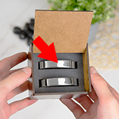 По Вашему заказу мы нанесем гравировку на браслет и крышку подарочного футляра. Гравировка наносится методом лазерной гравировки, а значит никогда не сотрётся. Просто укажите текст гравировки и посмотрите как она будет выглядеть на готовом подарке. Мы изготовим Ваш заказ без предоплаты всего за 1 день.